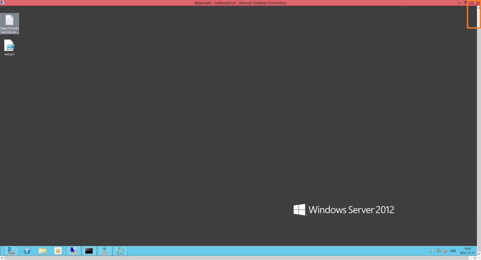 This is a short post on a simple subject, not directly a SharePoint subject but like most of the Windows Server 2012 posts I have made, it is releated. As SharePoint geeks we never spend a day at work without fiddling with our test servers, these are usually kept as virtual servers in Hyper-V or VM-Ware. Either way, it is always, at least to me, a pain using a laptop with a small screen or any external display with a different resolution than your desktop on the remote server.