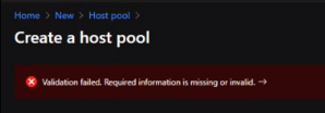 WVD spring update, create new hostpool from the Azure Portal – you fill in all the information about the setup, and when you run the validation on the last step, it fails with the shady error message: