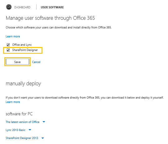 OK, if you did not know this, Office 365 has a link for every user, where they can freely or included in the license, download software. It includes the Office 365 Proplus and Lync+Outlook for Mac and more, one of the applications offered to the users is SharePoint Designer.