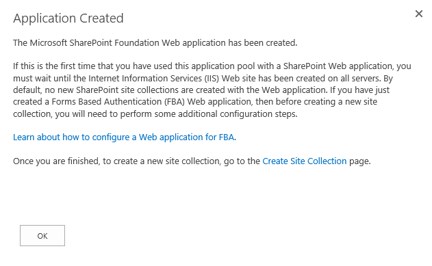 I seelcted to use an existing Application pool to save time and Resources, but that is not relevant. Ok to create: