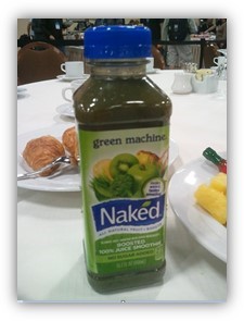 The day started as usual with breakfast, this was different though…no bacon. Who can live without a good stack of bacon at breakfast? 😉 Today they also offered a drink that was new to me, a green juice…see for yourself..