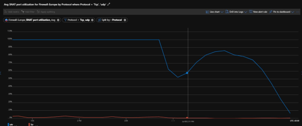 This immediately reduced the UDP SNAT util from 100%+ to 60-70%